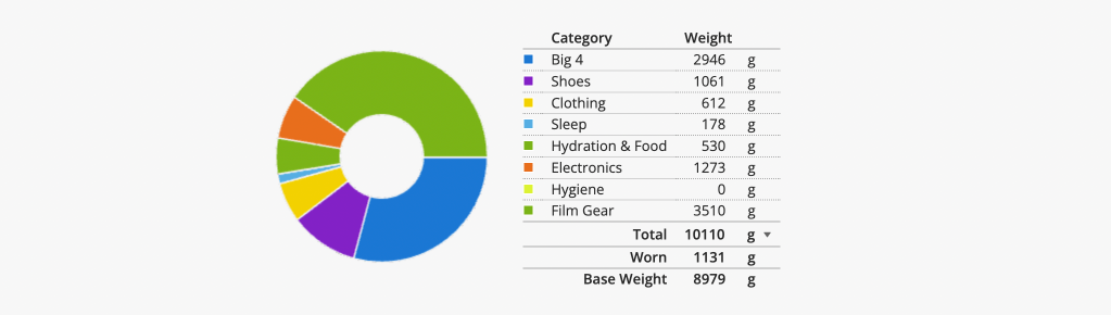 Gear List by Weight: https://lighterpack.com/r/eb5ub3